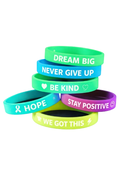 Custom silicone wristbands with embossed or printed branding — perfect for campaigns & events.